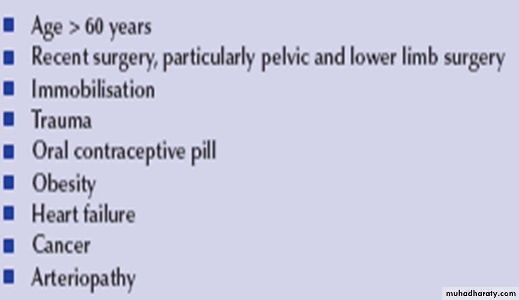 Deep vein thrombosis:There are several risk factors for deep vein thrombosis (DVT