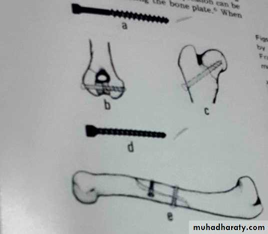 Bone plating effectively counteracts all destructive fracture forces and screws are used to appose small bone fragments.
