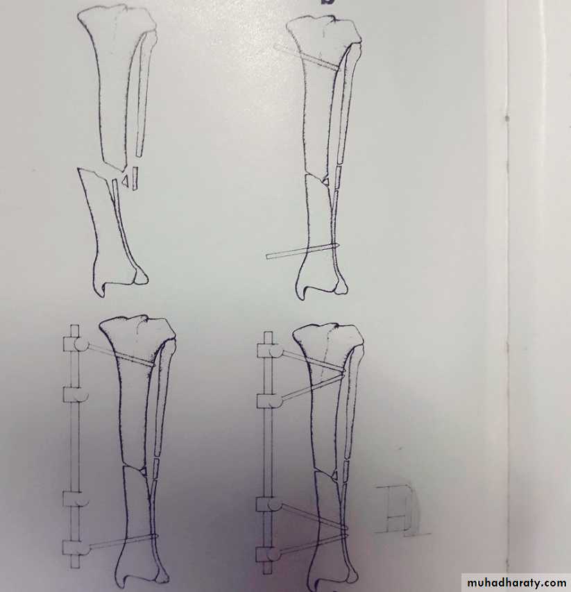 If reduction is satisfactory, rigid fixation should be applied for extended period.If there is good bone contact with malalignment or bending at the fracture site, the bone should be straightened and rigid fixation is applied.