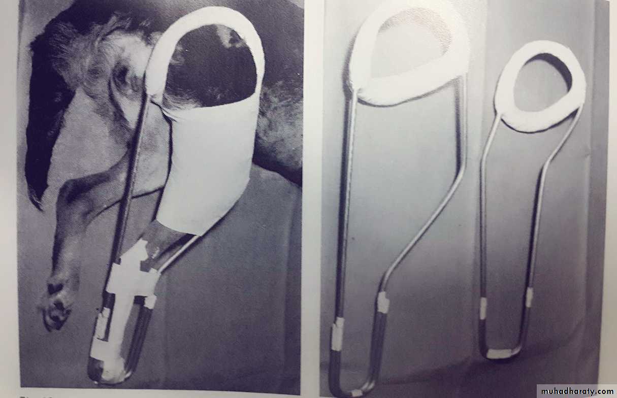 This splint has been widely used on small animals and can be used also onlarge animals. Its use is basically limited to restrict movement.