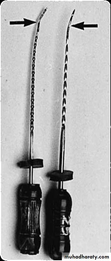 • Use of flexible Ni-Ti files in curved canals .