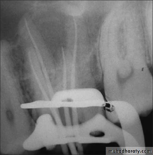 • If displacement of the MAC is suspected, a radiograph is made before excess gutta-percha removal.