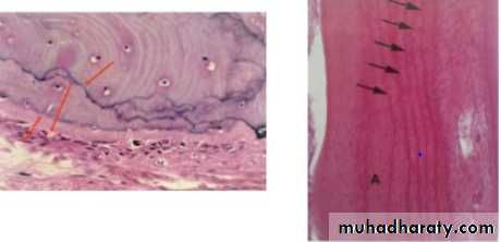 1- Resting lines :-are smooth straight lines consist of intercellular substance with less collagen and relatively more ground substance, and because of this they stained dark blue with H+E stain, they represent the resting period of the osteoblast during bone formation.