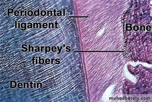 • Sharpey’s fibres – principal fibres of the periodontal ligament that are embedded in the bone and cementum.