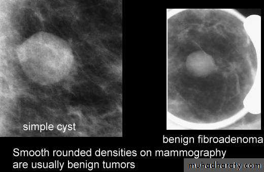 including cysts (non-cancerous, fluid-filled sacs) and non-cancerous solid tumors (such as fibro adenomas),