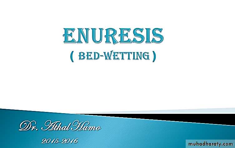 Enuresis is defined as the repeated voiding of urine into clothes or bed at least twice a week for at least 3 consecutive months in a child who is at least 5 yr of age (the age when volitional control of micturition is expected).