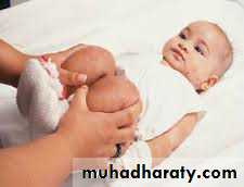 Placement of the infant on the abdomen in the knee-chest position while making certain that the infant's clothing is not constrictive. Premature attempts to obtain blood samples may cause further agitation and –ve effect.