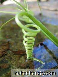 • كما في ورد الساعة Passifloraوالعنب Vitis وهذه هي سيقان نحيفة تلتف حول المسند ومن الجدير بالذكر ان الحوالق اوراقا وليست سيقان• السيقان المسطحه او الورقية Cladophyll