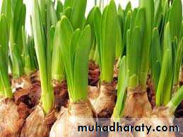 ساق قرصية discoid تحاط باوراق خازنة وظيفتها خزن الغذاء والتكاثر كما في البصل Allium cepa والثوم Allium sativum• الكورمات Corms