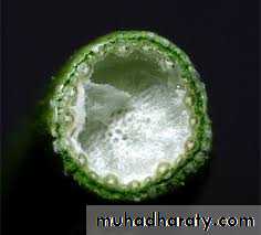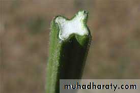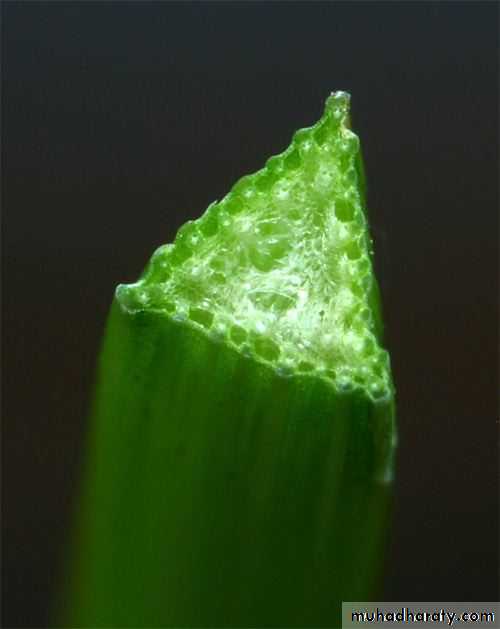 • ثلاثي الزوايا (Triquetrous) triangular كما في افراد العائلة السعدية Cyperaceae