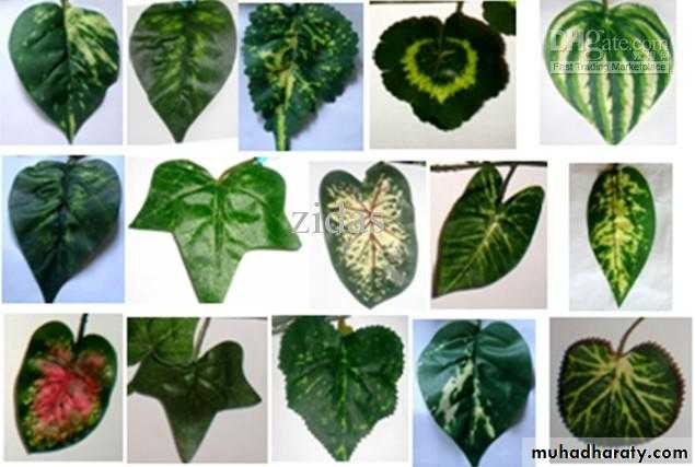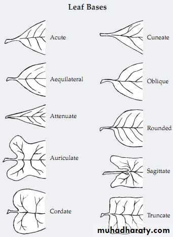تاخذ قاعدة نصل الورقة اشكالا مختلفة ومن بعض اشكالها :