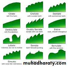 • incised ويعني ان الحافة مجزاة الى اجزاء بهيئة فصوص Segments وقد تكون الفصوص مرتبة ريشيا وفي هذه الحالة توجد ثلاث صور هي :