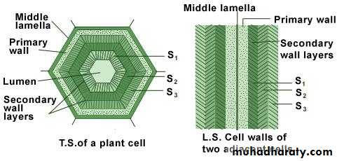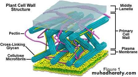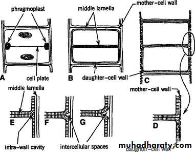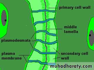 • الصفيحة الوسطى Middle lamella: عند وصول الصفيحة الخلوية الى جانبي الخلية وتتكون الصفيحة الوسطى اساسا من بكتات الكالسيوم والمغنسيوم.