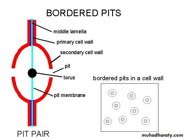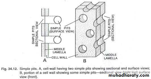 • وهي عبارة عن تجاويف او انخفاضات تظهر النقر بشكل متقابل في الخلايا المتجاورة ويفصلهما عن بعضهما غشاء رقيق يتألف اساسا من الصفيحة الوسطى