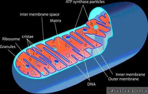 اظهر المجهر الالكتروني ان سطح المايتوكوندريا مكون من غشائين رقيقين سمك كل منهما 40 انكستروم ويكون الغشاء الداخلي ذا تجعدات داخلية عميقة تسمى الطيات الميتوكوندرية Mitochondrial cristae وتعتبر اسطحها مجال حدوث تفاعلات التنفس حيث توجد فيها انزيمات خاصة بدورة كريبس Krebs cycle وبعض الانزيمات الخاصة ببناء مركب ATP لذا تعد مركز بناء الطاقة وخزنها، كما توجد العديد من الانزيمات مقترنة مع الغشاء او في ارضية او سدى Matrix هذه العضيات.