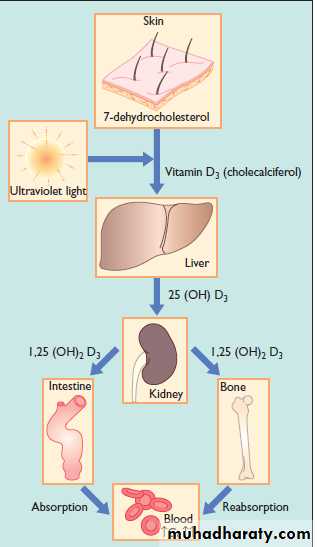 Blood tests – serum calcium is low or normal phosphorus low, plasma alkaline phosphatase activity greatly increased, 25-hydroxyvitamin D may be low and parathyroid hormone elevated.