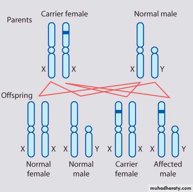 3. each son of a female carrier has a 1 in 2 (50%) risk of being affected