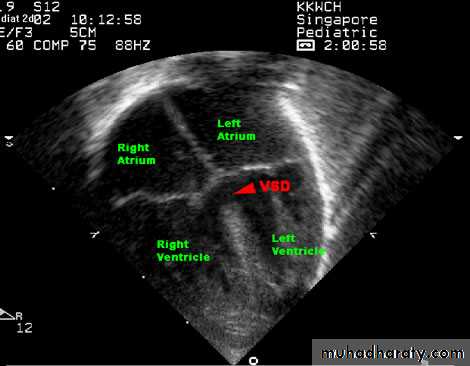 Two-dimensional and Doppler echo studies can identify the number, size, and exact location of the defect; estimate PA pressure; identify other associated defects; and estimate the magnitude of the shunt.NATURAL HISTORY