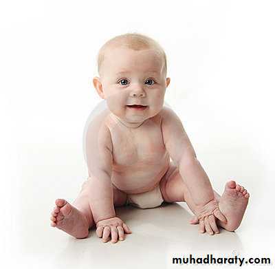 By 8 months, the baby crawls on the abdomen, and can sits withoutsupport.