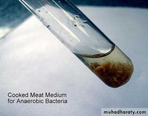 6. Anaerobic media:Anaerobic bacteria need special media for growth because they need low oxygen content, reduced oxidation –reduction potential and extra nutrients.
