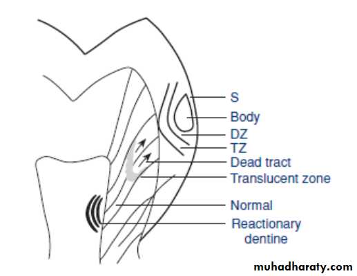4- Dead tracts : the odontoblast processes have been destroyed without producing tubular sclerosis.