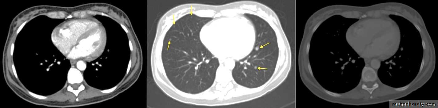 Intravenous iodinated contrast material USES in CT:• Differentiation of normal blood vessels from abnormal masses, e.g. hilar vessels vs. LN.
