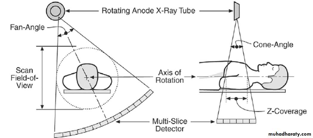 • The difference with MDCT is that instead of a single row of detectors multiple detector rows are used.