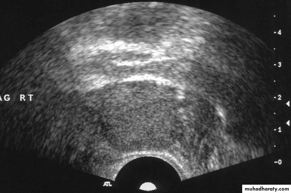 • Transrectal US (TRUS): guidance of prostate biopsy; staging of rectal cancer