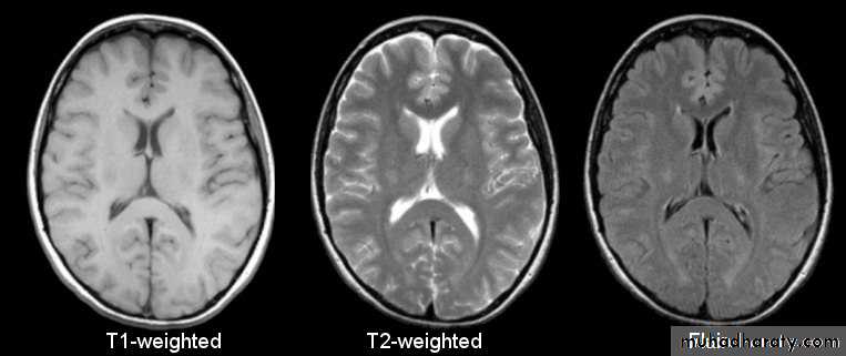 • Spin echo sequences include T1-weighted, T2- weighted and proton density.