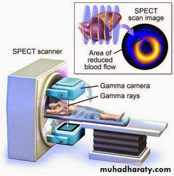 • The gamma rays emitted by the radionuclides are detected by a gamma camera that converts the absorbed energy of the radiation to an electric signal. This signal is analysed by a computer and displayed as an image.