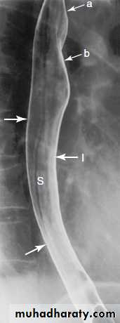 Stricture: is a circumferential narrowing. It may have tapering ends or it may end abruptly and have overhanging edges (shouldering) which indicate malignancy