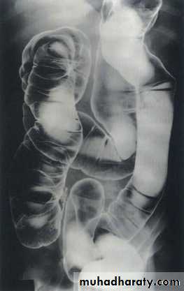 • Single contrast barium enema with dilute barium may be used in children for the diagnosis of large bowel pathology, such as Hirschsprung disease.