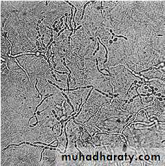 A drop or two of the KOH solution is run under the cover slip. After 5 –10 min examined under a microscope .