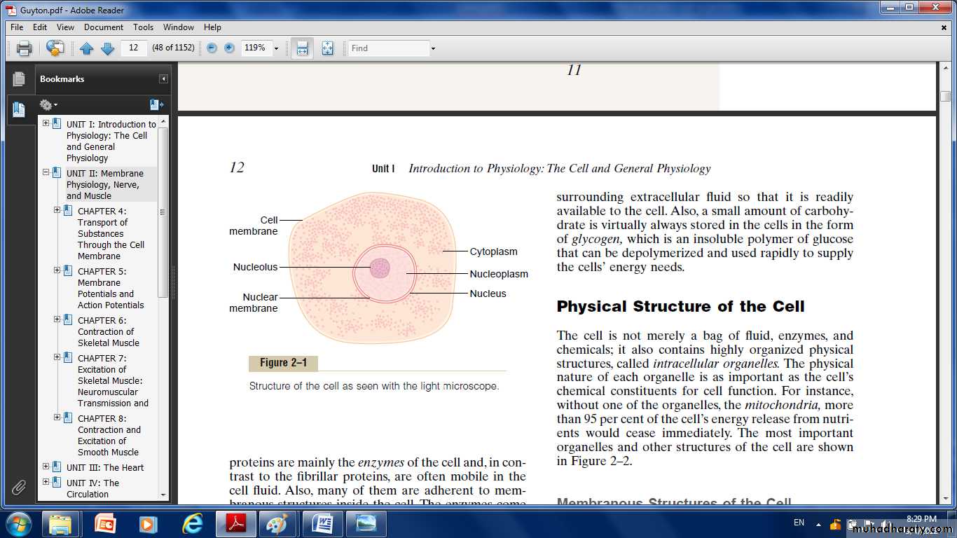 Organization of the CellA typical cell formed by two major parts the nucleus and the cytoplasm. The nucleus is separated from the cytoplasm by a nuclear membrane, and the cytoplasm is separated from the surrounding fluids by a cell membrane. The different substances that make up the cell are collectively called protoplasm. Protoplasm is composed mainly of five basic substances: water, electrolytes, proteins, lipids, and carbohydrates.