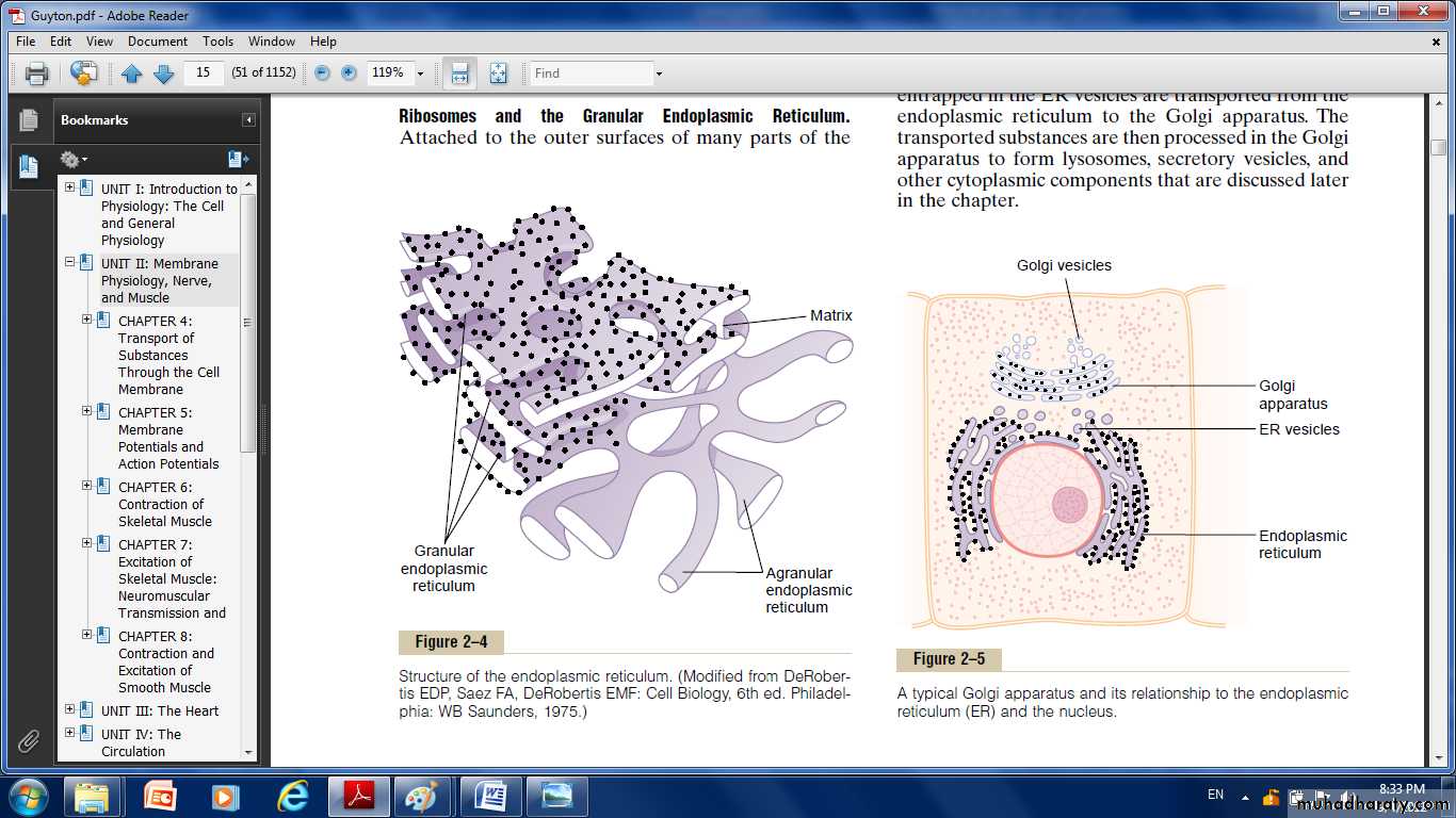 Part of the endoplasmic reticulum has no attached ribosomes. This part is called the a granular, or smooth, endoplasmic reticulum. The a granular reticulum functions is synthesis of lipid substances.