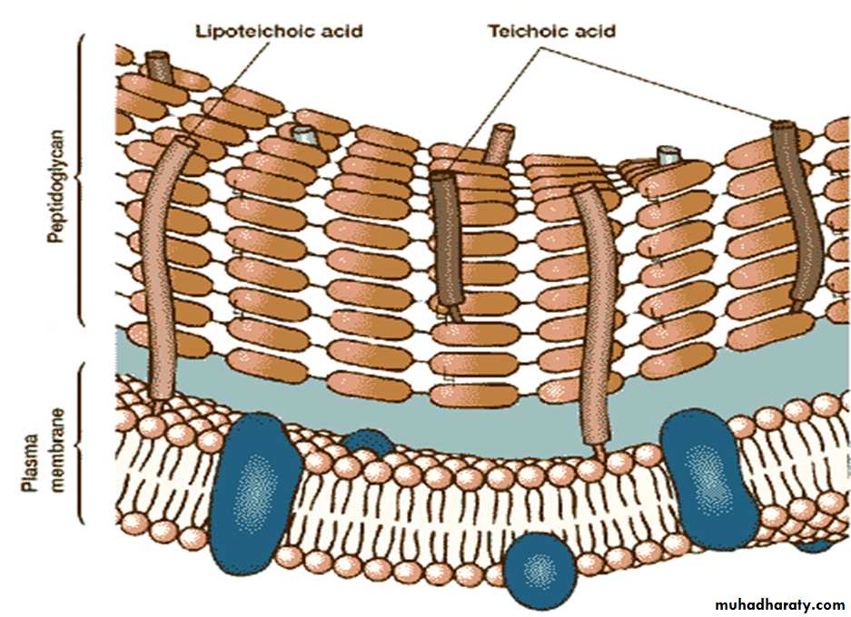 Lipoteichoic acid links peptidoglycan layer to the cell membrane.