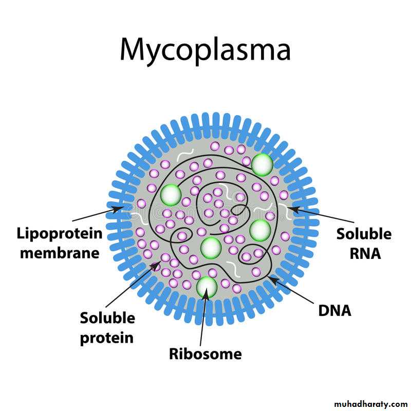 These bacteria lack in rigid cell wall (cell wall lacking) and are highly pleomorphic and of indefinite shape.They occur in round or oval bodies and in interlacing filaments.