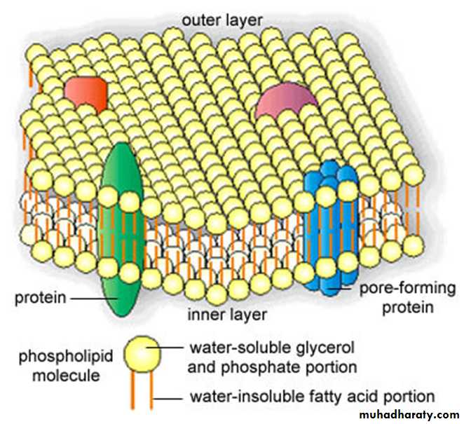 The cytoplasmic membrane lies just inside the peptidoglycan layer of the cell wall and is a ‘unit membrane’ composed of a phospholipid bilayer similar in appearance to that of eukaryotic cells. However, eukaryotic membranes contain sterols, whereas prokaryotes generally do not (the only