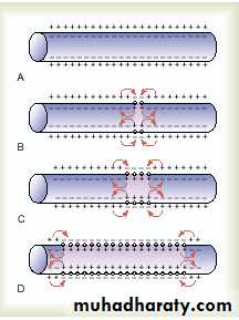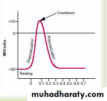 normal “polarized” state of (–90 millivolts) is immediately neutralized and even the potential rising rapidly in the positive direction.