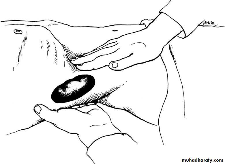 General ObservationsBimanual examination of the kidney The kidney is lifted from behind with one hand in the costovertebral angle & palpated with t