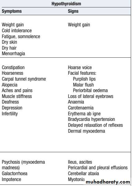 The clinical presentation depends on the duration andseverity of the hypothyroidism.