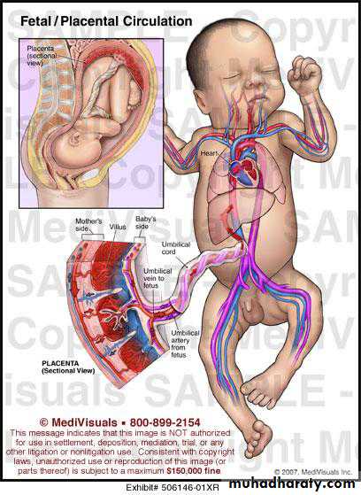 Is quite different from that of the adult by the follows:1-oxygenation occurs in the placenta not in the lung.