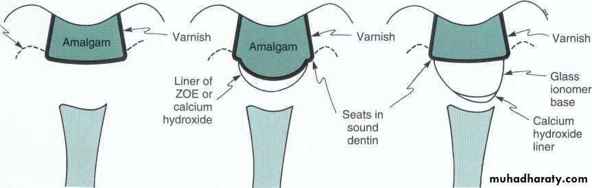 • protection• A, For shallow amalgam tooth preparations, varnish or sealer is applied to walls of preparation