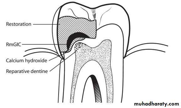 • For teeth with a normal pulp or reversible pulpitis a protective liner (sub-lining or sub-base) or lining (base) is used (such as calcium hydroxide or glass ionomer cement).