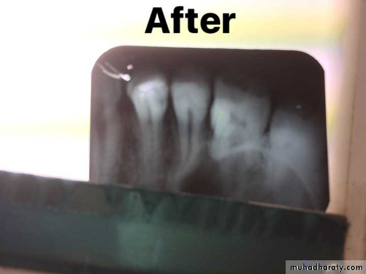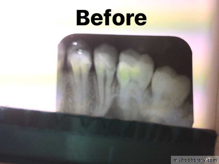 • Procedure:• After the complete root formation (apexogenesis) the tooth should be reopened and removes any restorative material from the pulp chamber and root canal therapy is done.
