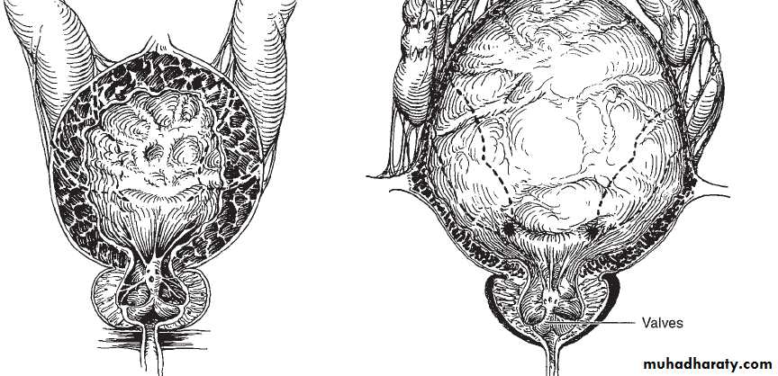 • Anterior urethral valves• rare, cause urethral dilation &diverticulum. They are manifested by UTI, urine incontinence. They are treated by endoscopic fulgration.