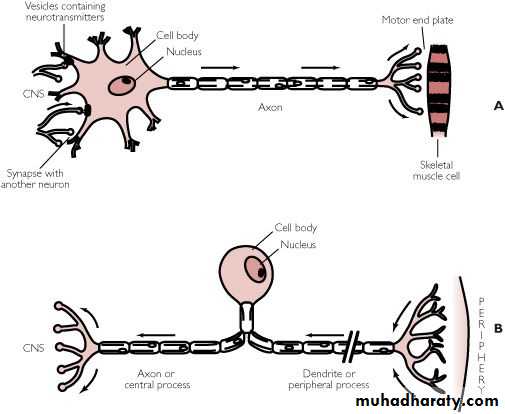 Sensory neuron that are capable of transmitting the sensation of pain. consist of three major part which are cell body , the axon , and dendrites . The dendrites which ends in the free nerve endings and is the most distal segment of sensory neuron which respond to stimulation produced in tissue in which they lies provoking an impulse that is transmitted centrally along the axon . The axon is a thin cable – like structure that may be quite long ( the giant axon has been measured as 100-200 cm ) it is composed from neural cytoplasm and covered by thin sheath which is the nerve membrane, in some nerves a lipid rich layer of myelin covers this membrane and the membrane is known as myelinated nerve fiber , current theories stated that nerve excitability and conduction are both attributed to the changes developing within the nerve membrane .