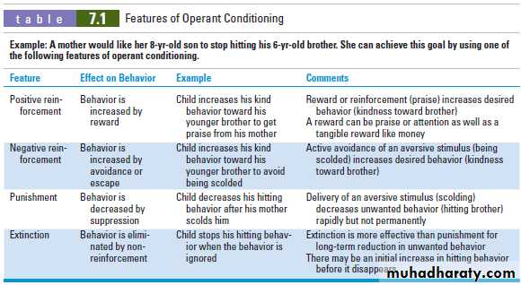 Features1. The likelihood that a behavior will occur is increased by positive or negative reinforcement and decreased by punishment or extinction.