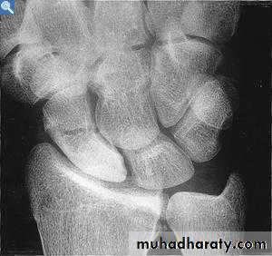 4.In sub capital fracture of the femoral neck & fracture through the waist of the scaphoid bone , the femoral head & proximal pole of the scaphoid become fragmented & dense due to the ischemia .