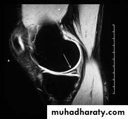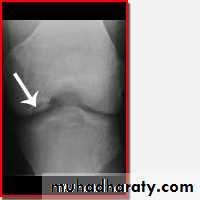 2. crescentic lucent line may be seen just beneath the articular cortex.